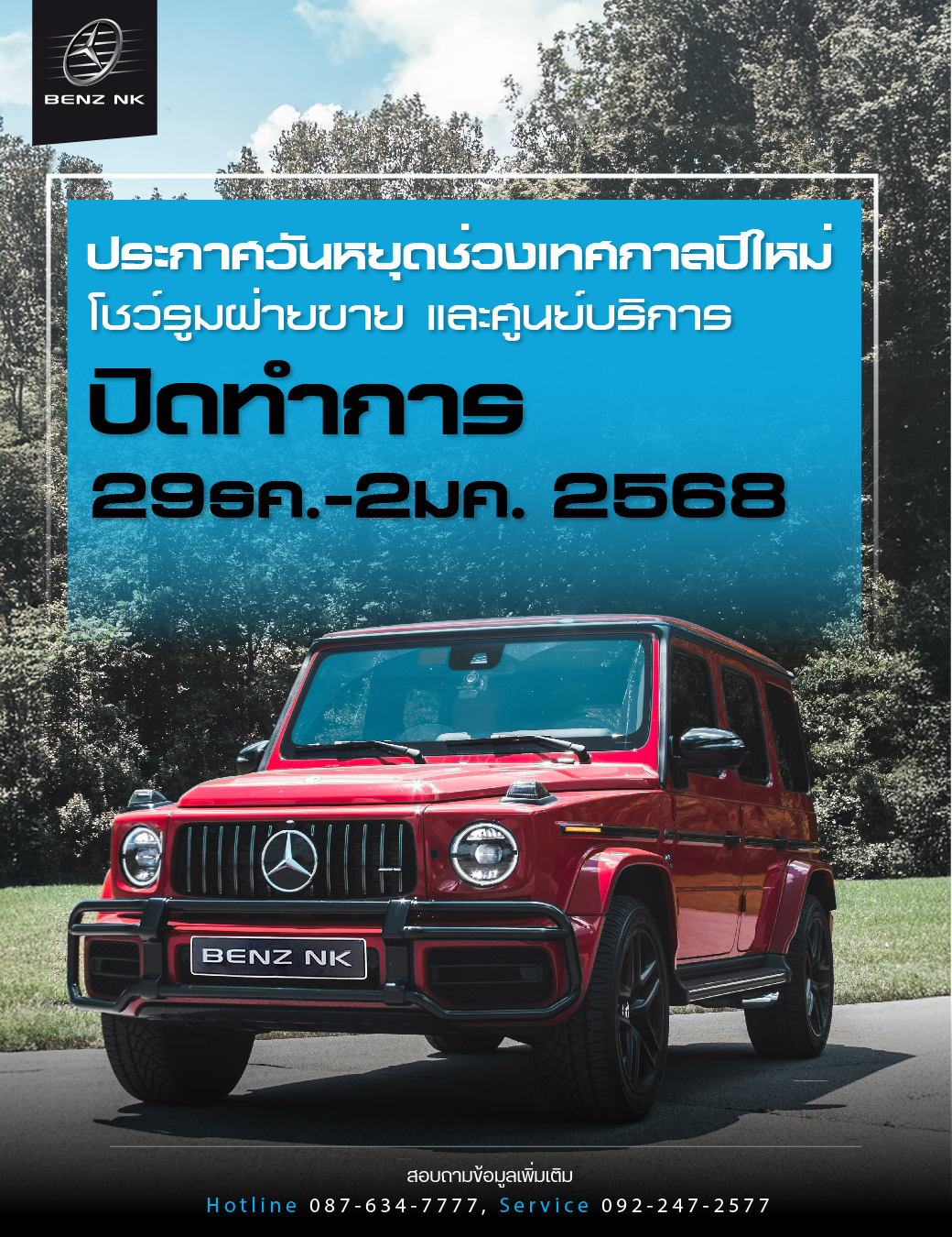 ประกาควันหยุดช่วงเทคกาลปีใหม่ ปิดทำการ 29มค.-2มค. 2568