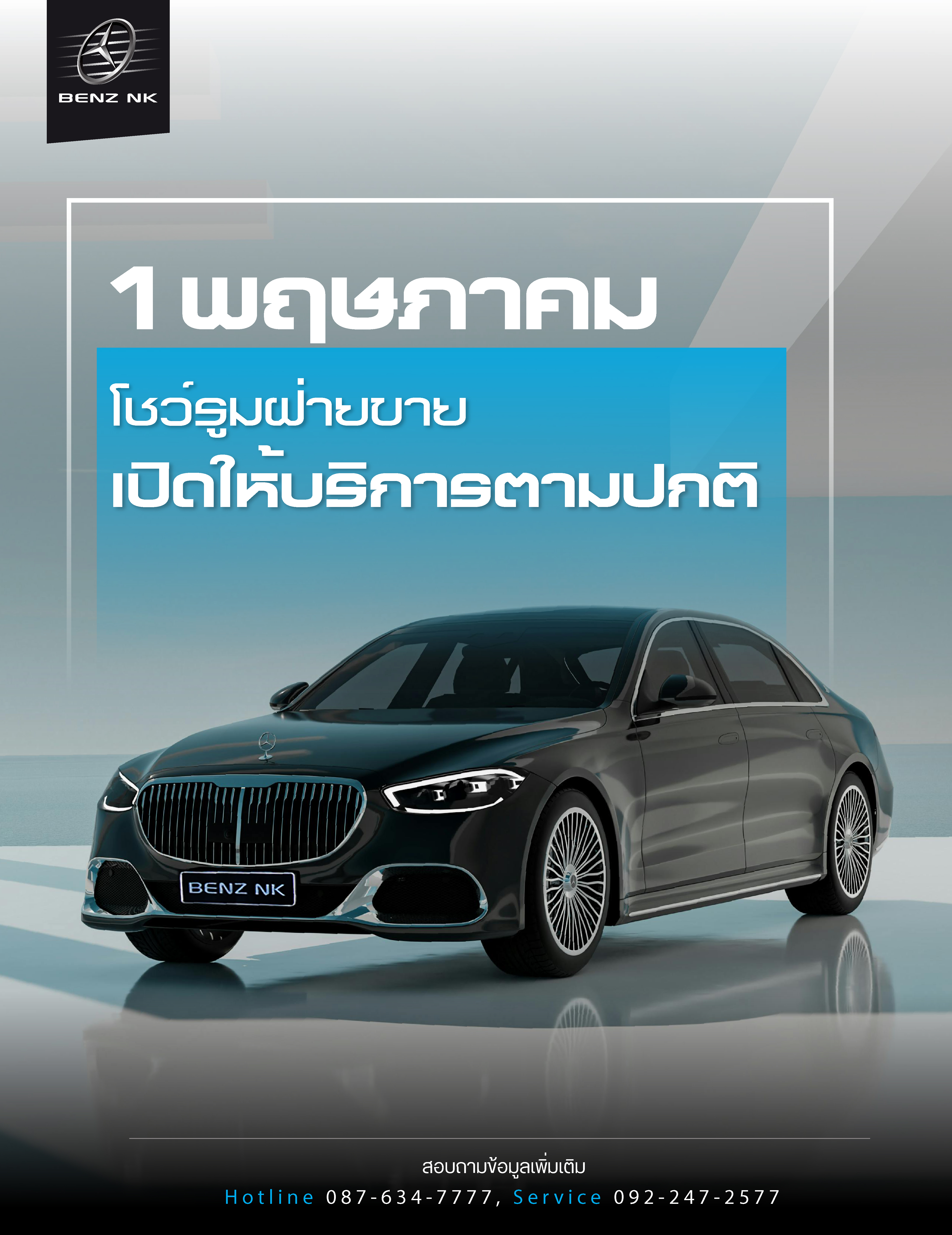 1พฤษภาคม โชว์รูมฝ่ายขาย เปิดให้บริการตามปกติ