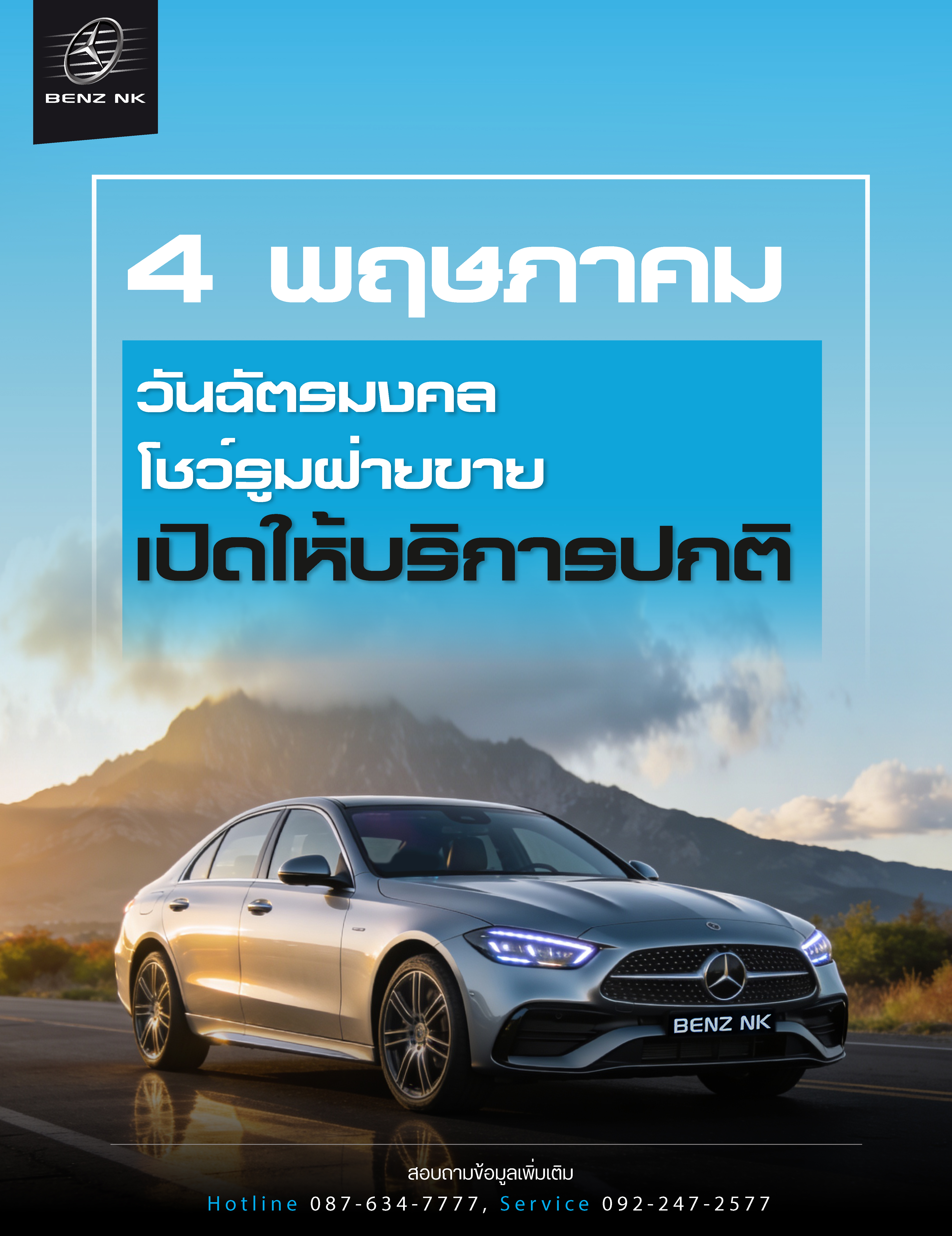 4 พฤษภาคม วันฉัตรมงคล โชว์รูมฝ่ายขาย เปิดให้บริการปกติ